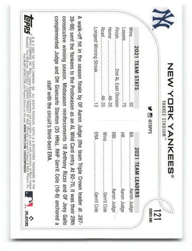 2022 Topps #121 New York Yankees Aaron Judge NM-MT ID:40640