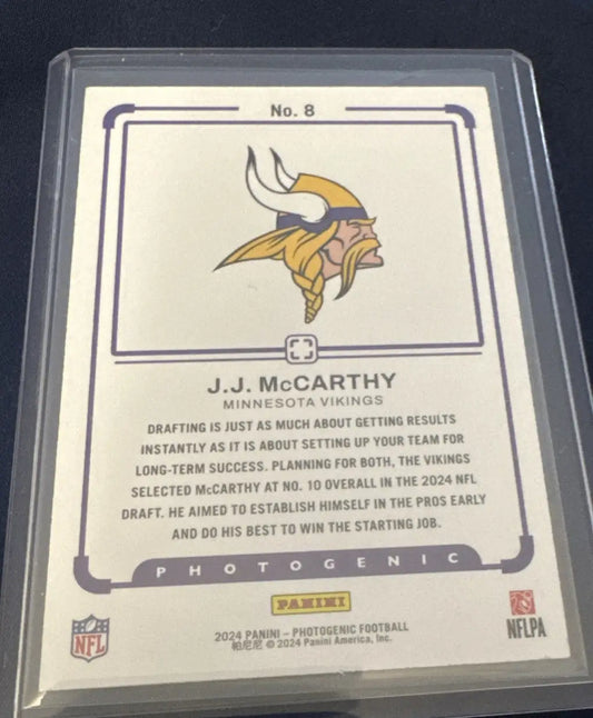 #8 JJ McCarthy RC Rookie Draft Snapshot Minnesota Vikings 2024 Panini Photogenic