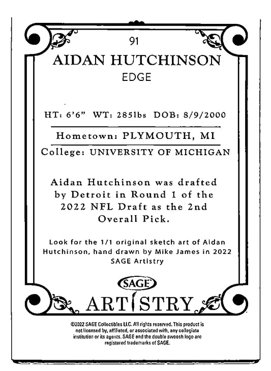 (3) Lot 2022 Sage Artistry Aidan Hutchinson #91 Base Silver Canvas Michigan Lion