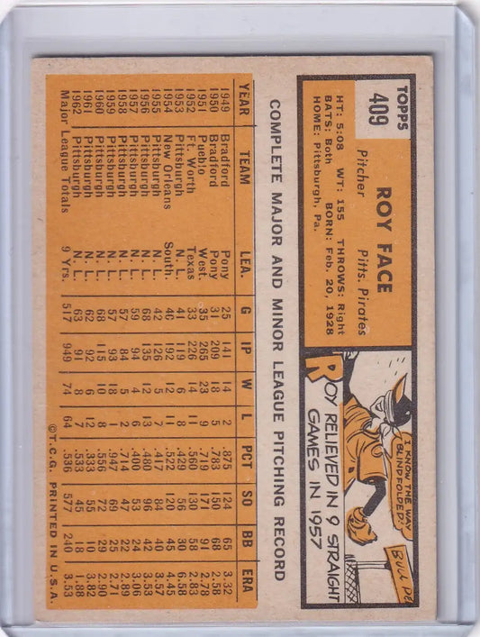 1963 Topps 409 Roy Face - Pittsburgh Pirates