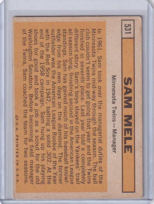 1963 Topps 531 Sam Mele - Minnesota Twins