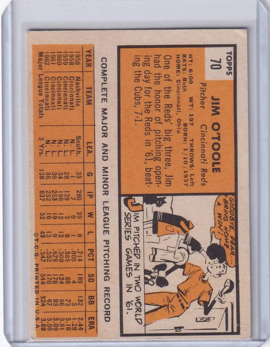 1963 Topps 70 Jim O'Toole - Cincinnati Reds