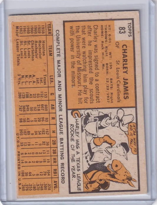 1963 Topps 83 Charley James - St. Louis Cardinals