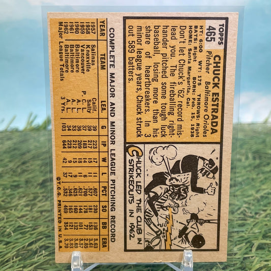 1963 Topps Chuck Estrada #465 Baltimore Orioles HIGHER GRADE NO CREASES