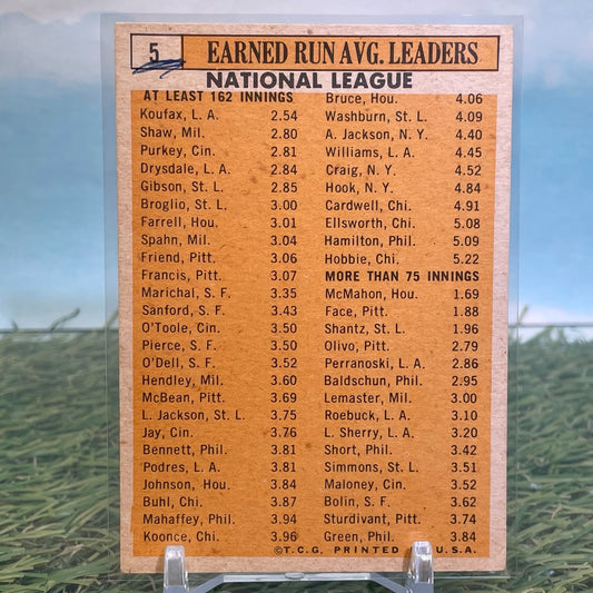 1963 Topps National League ERA Leaders Koufax Drysdale Gibson #5 123A