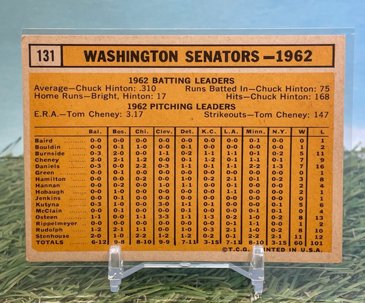 1963 Topps Washington Senators Team #131 Baseball Card