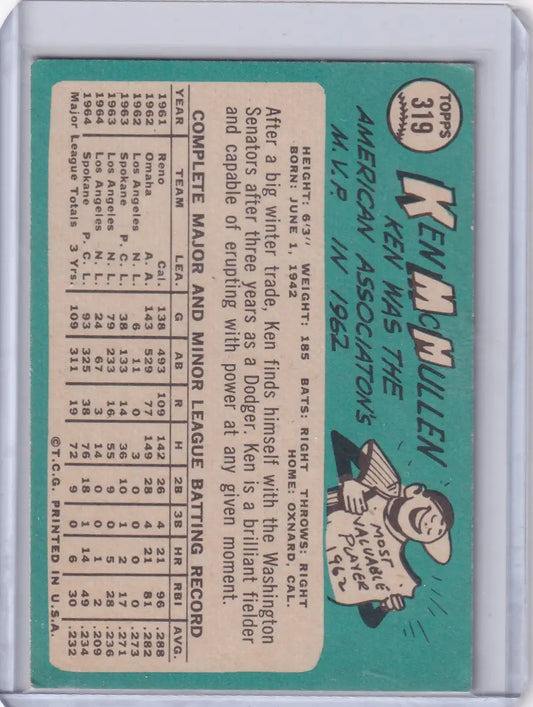 1965 Topps Baseball #319 Ken McMullen - Washington Senators