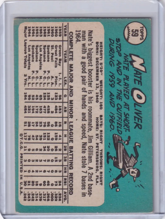 1965 Topps Baseball #59 Nate Oliver - Los Angeles Dodgers
