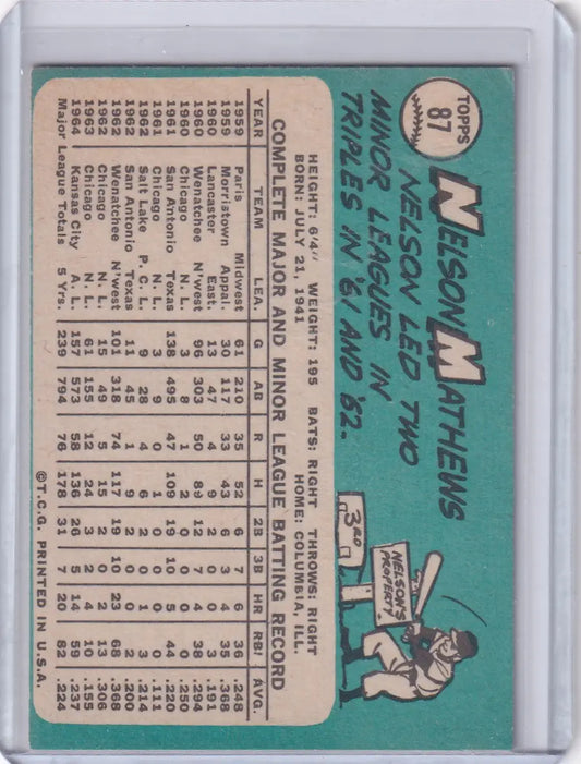 1965 Topps Baseball #87 Nelson Mathews - Kansas City Athletics