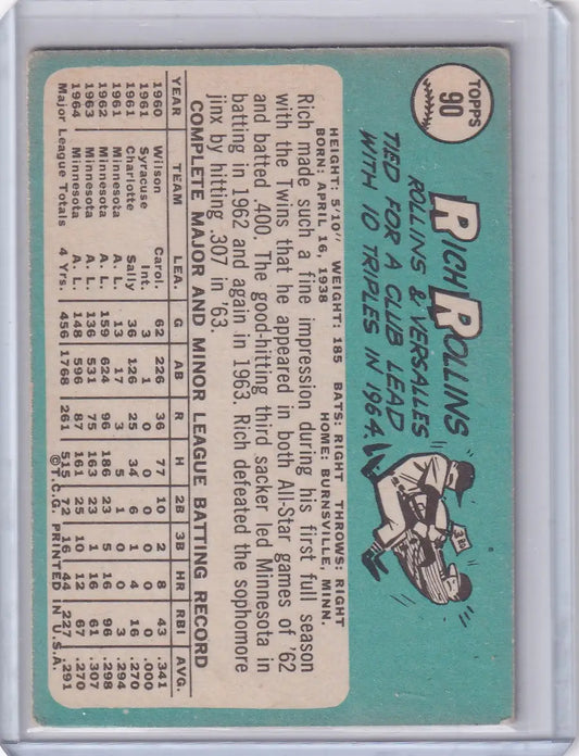 1965 Topps Baseball #90 Rich Rollins - Minnesota Twins