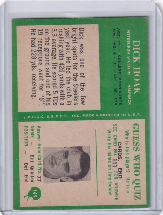 1966 Philadelphia Football #149 Dick Hoak - Pittsburgh Steelers RC