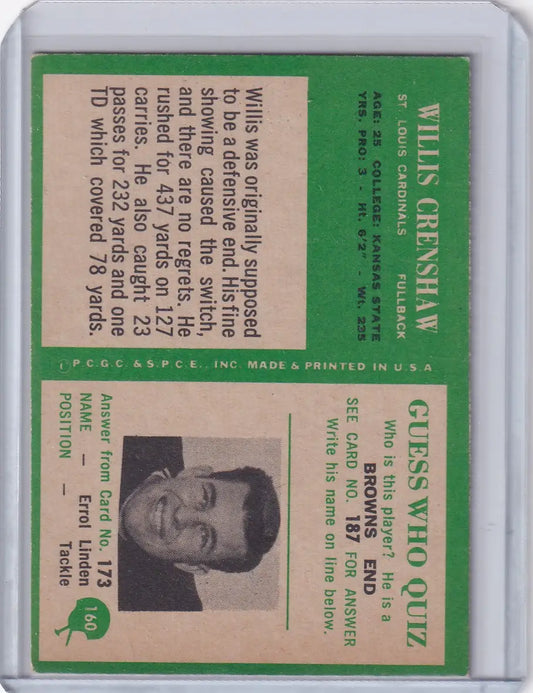 1966 Philadelphia Football #160 Willis Crenshaw - St. Louis Cardinals RC