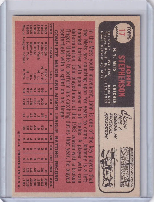 1966 Topps Baseball #17 John Stephenson - New York Mets