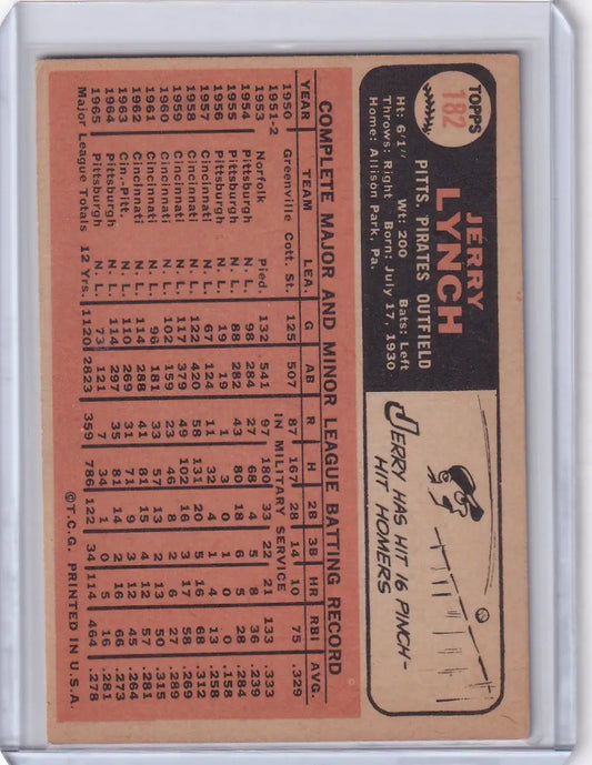 1966 Topps Baseball #182 Jerry Lynch - Pittsburgh Pirates