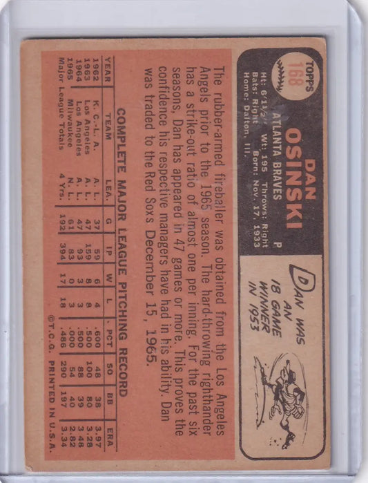1966 Topps Baseball #168 Dan Osinski - Atlanta Braves
