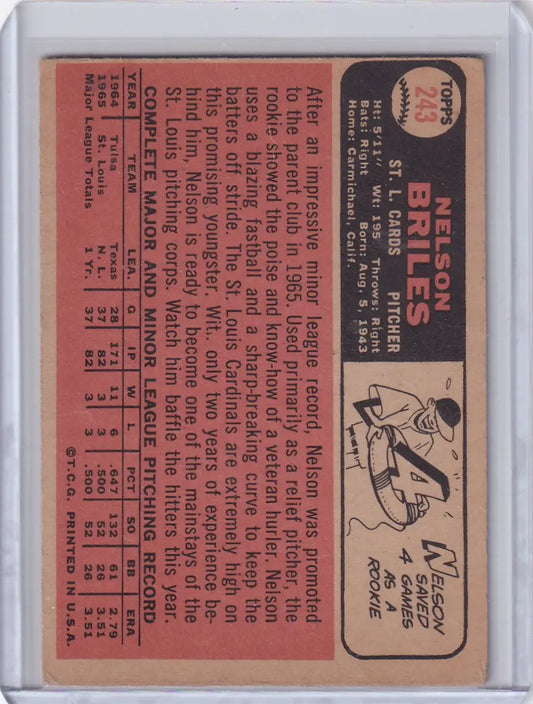 1966 Topps Baseball #243 Nelson Briles - St. Louis Cardinals