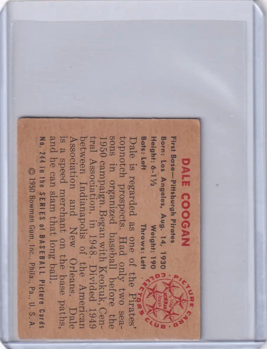 1950 Bowman Baseball #244 Dale Coogan - Pittsburgh Pirates