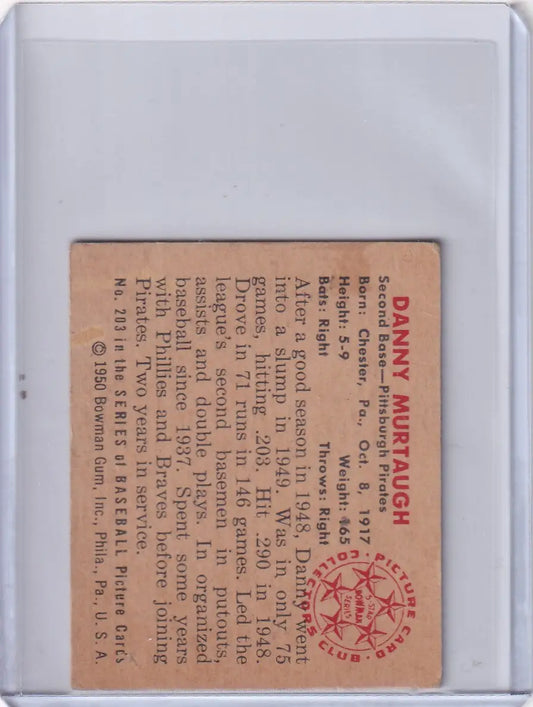 1950 Bowman Baseball #203 Danny Murtaugh - Pittsburgh Pirates