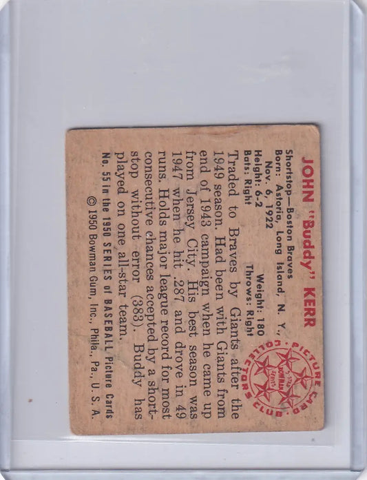 1950 Bowman Baseball #55 Buddy Kerr - Boston Braves