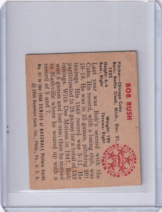 1950 Bowman Baseball #61 Bob Rush - Chicago Cubs RC