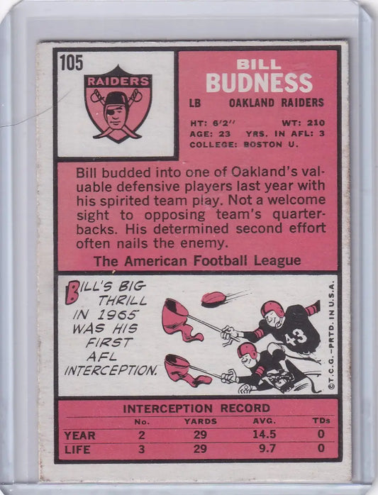 1966 Topps Football #105 Bill Budness - Oakland Raiders