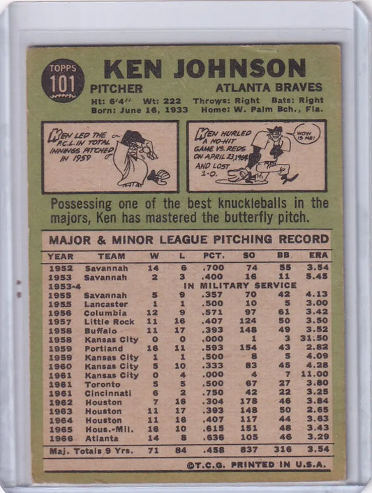 1967 Topps Baseball #101 Ken Johnson - Atlanta Braves