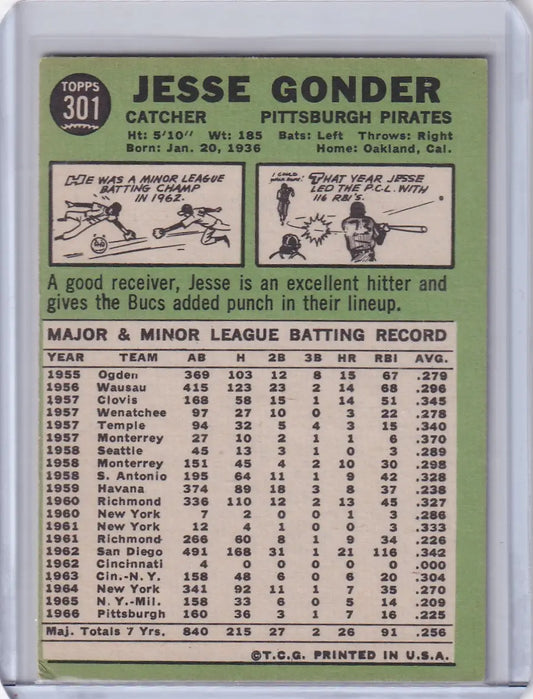 1967 Topps Baseball #301 Jesse Gonder - Pittsburgh Pirates