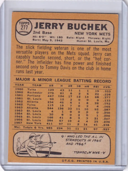1968 Topps Baseball #277 Jerry Buchek - New York Mets