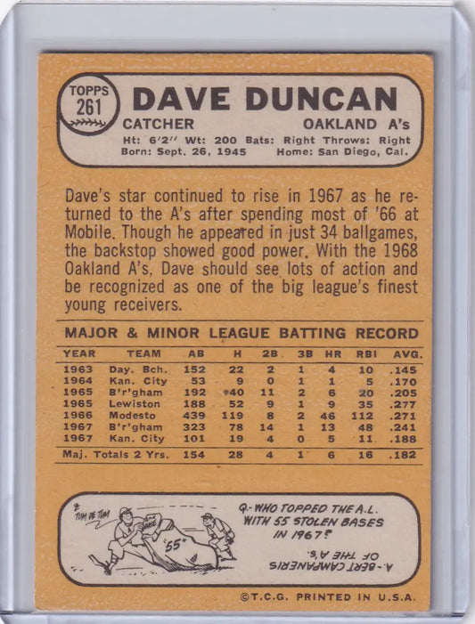 1968 Topps Baseball #261 Dave Duncan - Oakland Athletics