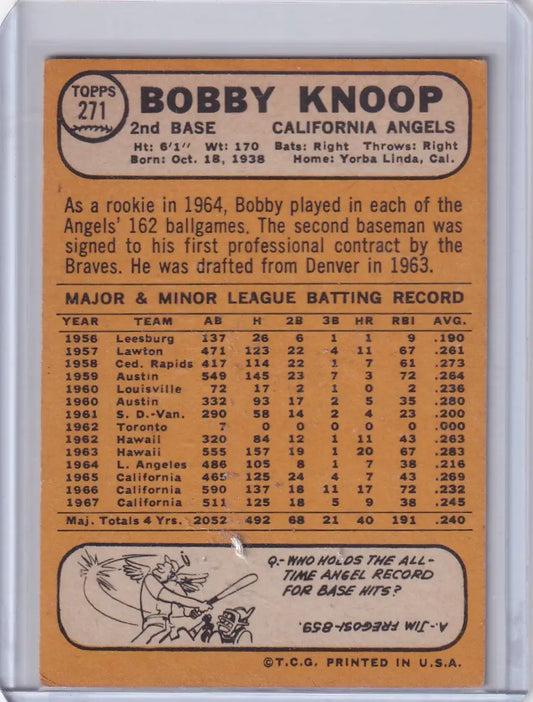 1968 Topps Baseball #271 Bobby Knoop - California Angels