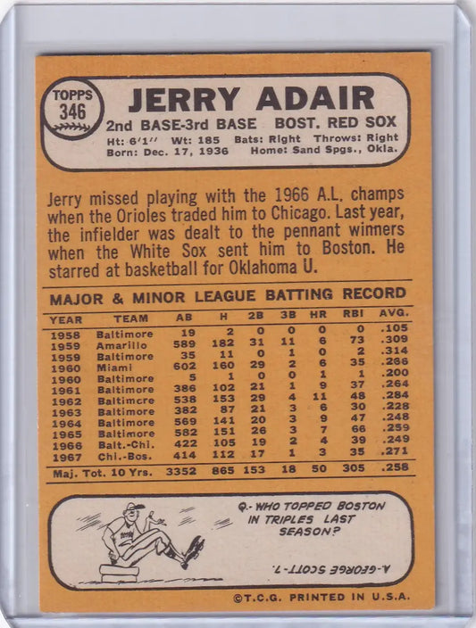 1968 Topps Baseball #346 Jerry Adair - Boston Red Sox