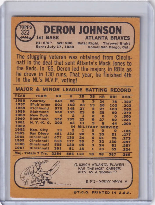 1968 Topps Baseball #323 Deron Johnson - Atlanta Braves