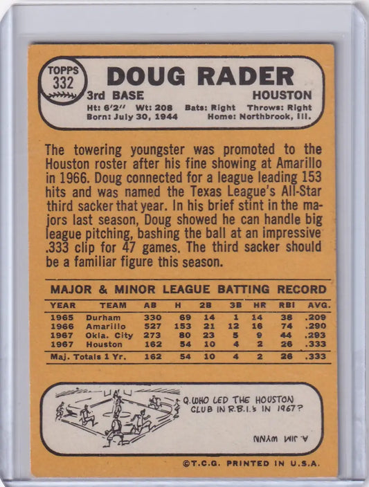 1968 Topps Baseball #332 Doug Rader - Houston Astros