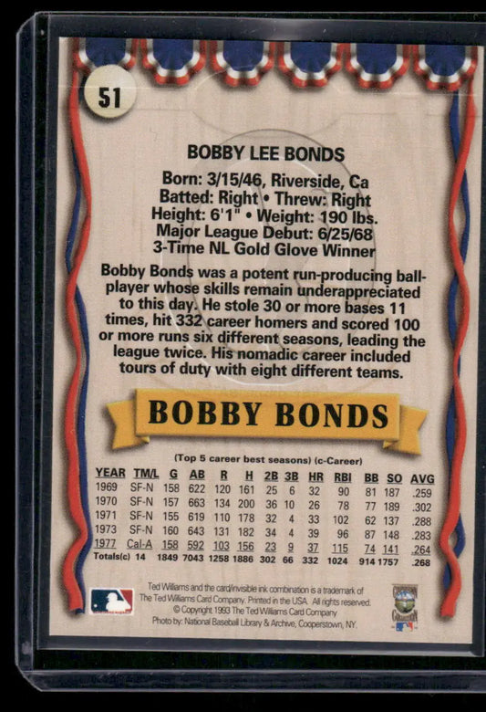 1969 Ted Williams Card Company Bobby Bonds #51 Baseball