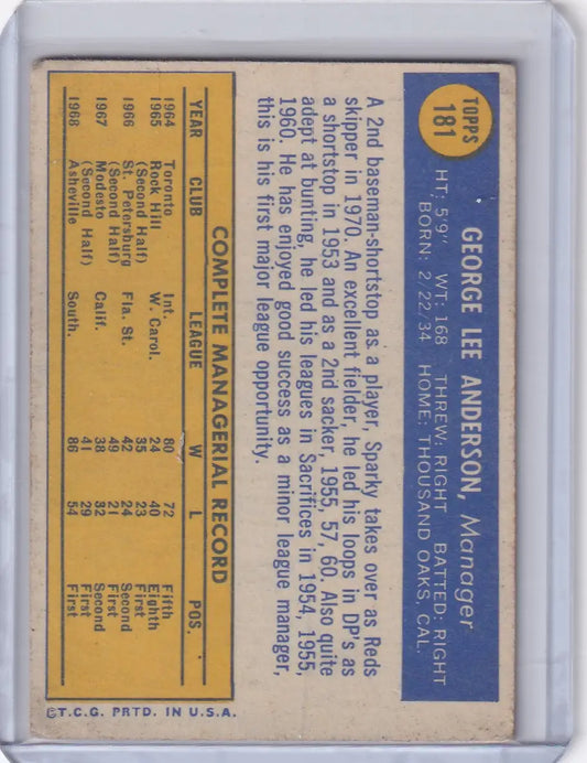 1970 Topps Baseball #181 Sparky Anderson - Cincinnati Reds