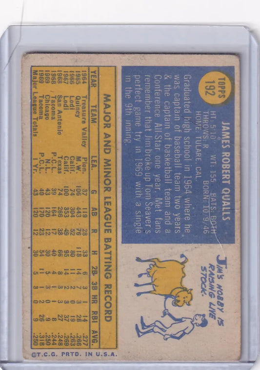 1970 Topps Baseball #192 Jim Qualls - Chicago Cubs