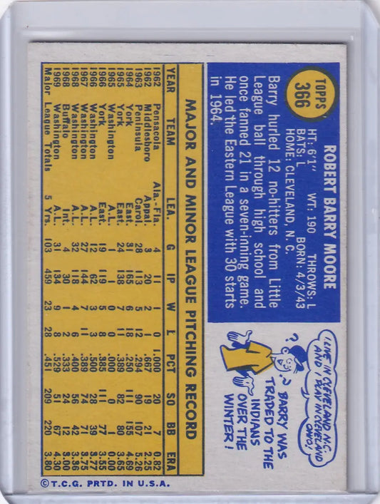 1970 Topps Baseball #366 Barry Moore - Cleveland Indians