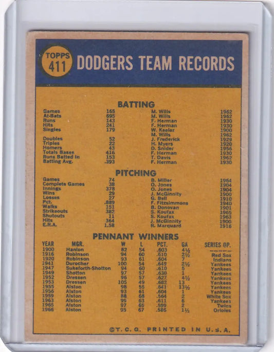 1970 Topps Baseball #411 Los Angeles Dodgers Team