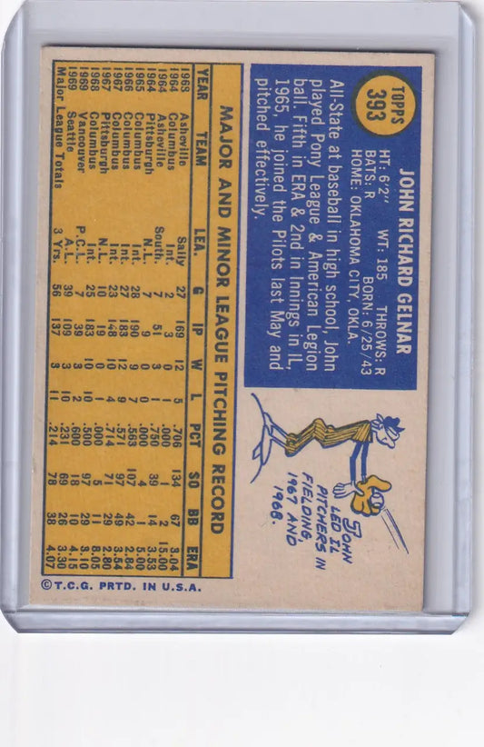1970 Topps Baseball #393 John Gelnar - Seattle Pilots