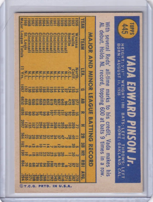 1970 Topps Baseball #445 Vada Pinson - Cleveland Indians