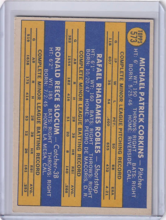 1970 Topps Baseball #573 Padres Rookies - Corkin / Robles / Slocum
