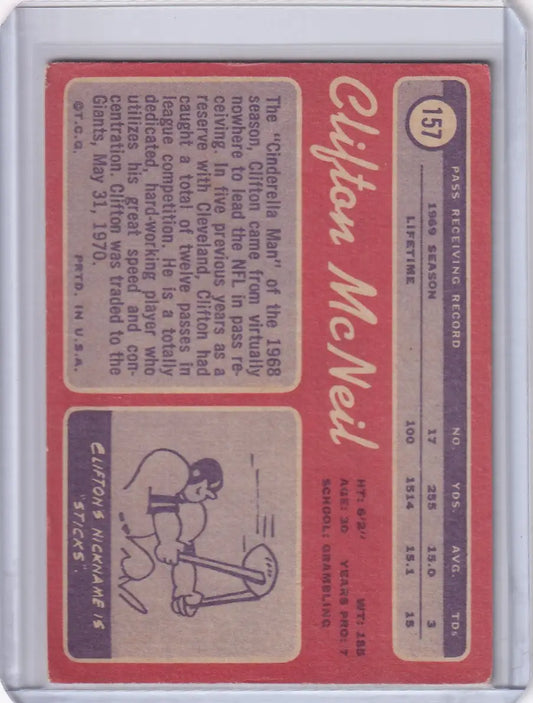 1970 Topps Football #157 Clifton McNeil - New York Giants