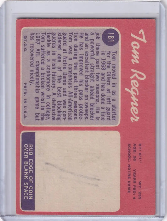 1970 Topps Football #181 Tom Regner RC - Houston Oilers
