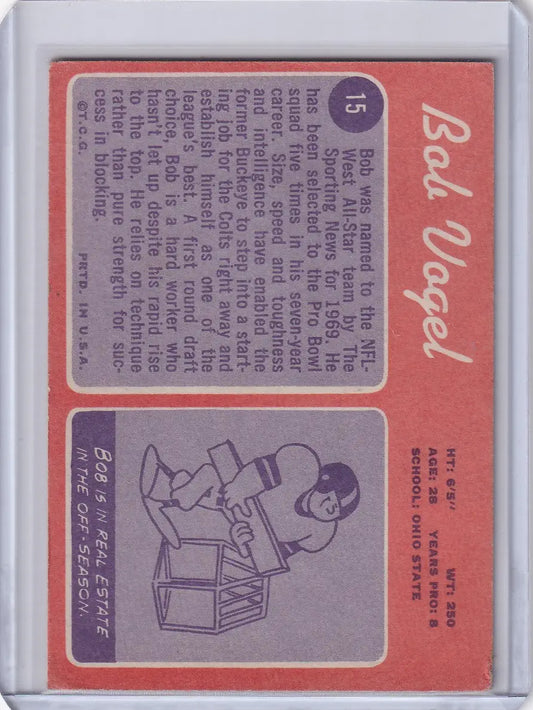 1970 Topps Football #15 Bob Vogel - Baltimore Colts