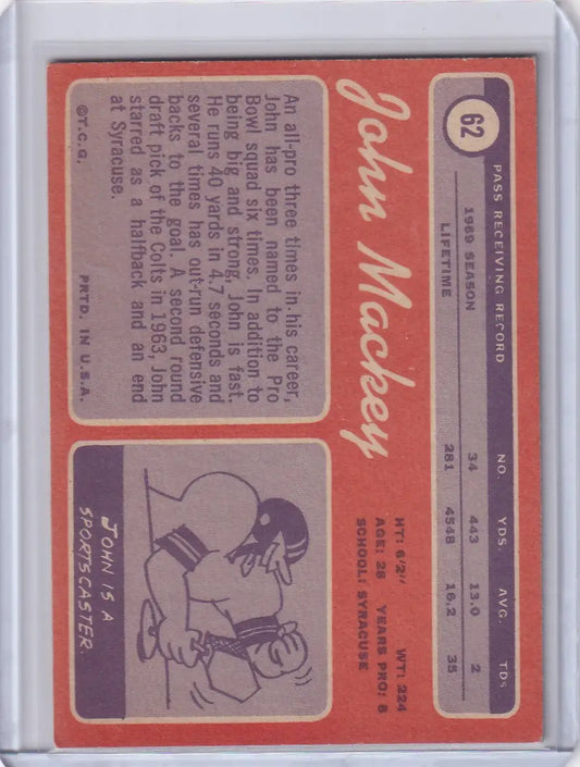 1970 Topps Football #62 John Mackey - Baltimore Colts