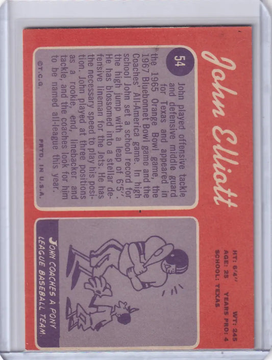1970 Topps Football #54 John Elliott RC - New York Jets