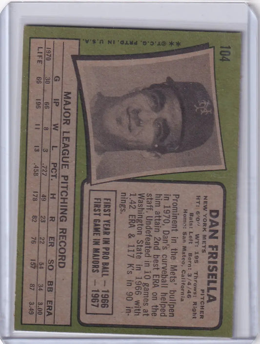 1971 Topps Baseball #104 Danny Frisella - New York Mets