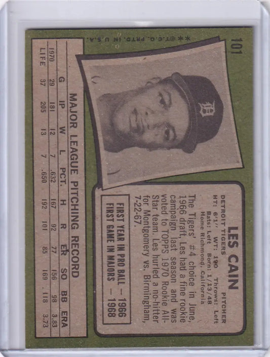1971 Topps Baseball #101 Les Cain - Detroit Tigers