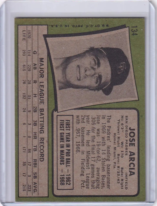 1971 Topps Baseball #134 Jose Arcia - San Diego Padres