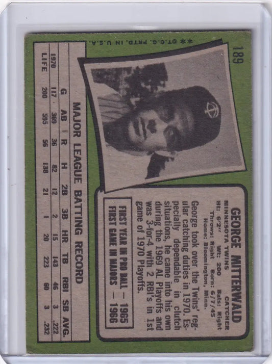 1971 Topps Baseball #189 George Mitterwald - Minnesota Twins